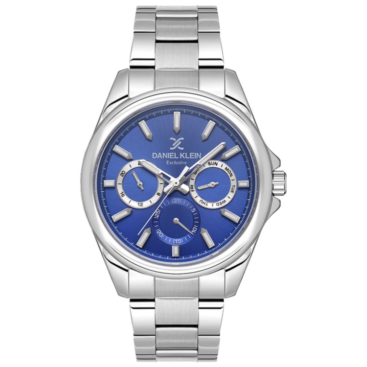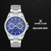 ساعت عقربه ای مچی دنیل کلین مردانه سه موتوره فول تایم ( نمایش ایام هفته ، نمایش زمان بر حسب 24 ساعت و ساعت دوم ساعت) دارای نشانگر تاریخ ،بدنه فول استیل دو رنگ نقره ای رزگلد و دور قاب کنگره ای ، بند تیکه ای استل دو رنگ نقره ای رزگلد با قفل تا شو ضامن دار صفحه سبز با شاخص های و عقربه ها رزگلد و شب تاب ، و با موتور اصل ژاپن می باشد.
