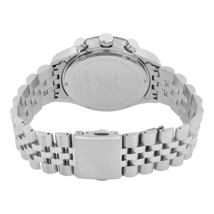 این طرح از برند ساعت مردانه دنیل کلین با طراحی خاص خود برای تیپهای مجلسی بسیار مناسب میباشد. بند چرمی و بدنه ی این ساعت دنیل کلین از جنس استیل است و از رنگ نقره ای و رزگلد و مشکی در آن استفاده شده است. از ویژگیهای منحصر به فرد این ساعت میتوان به طراحی بدنه ی این طرح از ساعت دنیل کلین که بسیار متفاوت و شیک است و چشم هر بیننده ای را خیره میکند اشاره کرد. همچنین دارای نمایشگر روزهای ماه و هفته و وضعیت 24ساعته و دو زمانه میباشد.