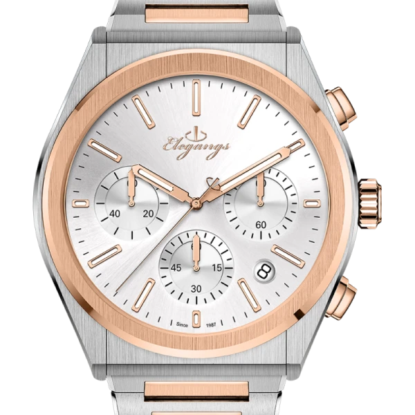 در هر بار تماشای ساعت الگنگس مدل SP8216-703، شما می توانید احساس ویژه ای را، همراه با تکنولوژی ساخت بالای ساعت های الگنگس و شوق و اشتیاق ما، برای تولید یک ساعت زیبا و خاص را درک نمایید. ما با افتخار مجموعه ای جدید از ساعت های الگنگس را با طراحی جدید و همچنین کیفیت منحصر به فرد را تولید می کنیم تا مشتریان ما به جای یک نام تجاری دیگر ساعت های الگنگس را بخرند. ساعت الگنگس مدل SP8216-703 از سری ساعت های مردانه و زنانه کلاسیک است که مخصوص آقایان تولید و عرضه شده است. ساعت الگنگس مدل SP8216-703 با بند استیل ضد حساسیت (آلرژی) 316 و سرامیک و تکنولوژی موتور روندا طلایی سوییس 762 همراه با شیشه ی Sapphire (ضد خش) می باشد. سایز بند این مدل از ساعت الگنگس 17 mm و قطر قاب ساعت 40 mm است.